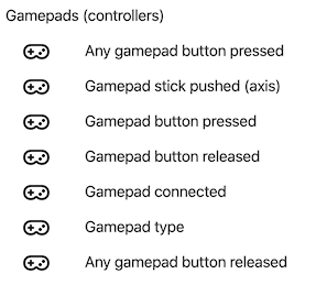 • マルチプレイヤー向けのゲームであれば、Gamepad connected 条件を使ってどのゲームパッドが接続されているかを調べるといいでしょう。それからプレイヤーの選んだゲームパッドの番号を変数に保存しておきます。あるいは最初のプレイヤーにはゲームパッド 1 を、他のプレイヤーにはゲームパッド 2 を固定で割り当てることもできます。