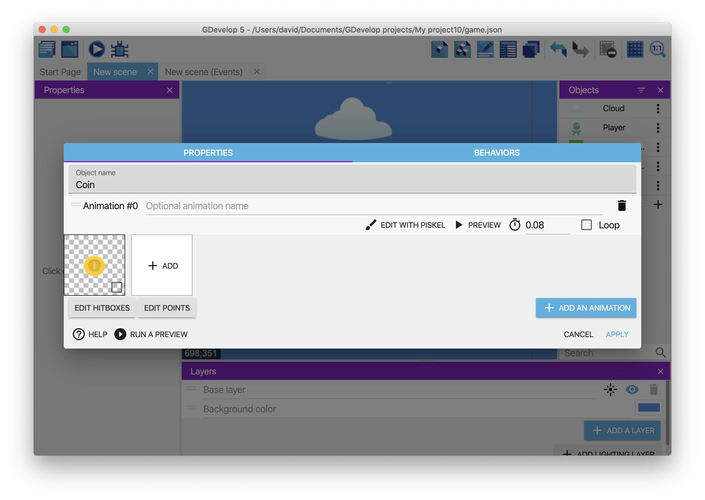 - 「Coin」という名前のスプライトオブジェクトを作成します。